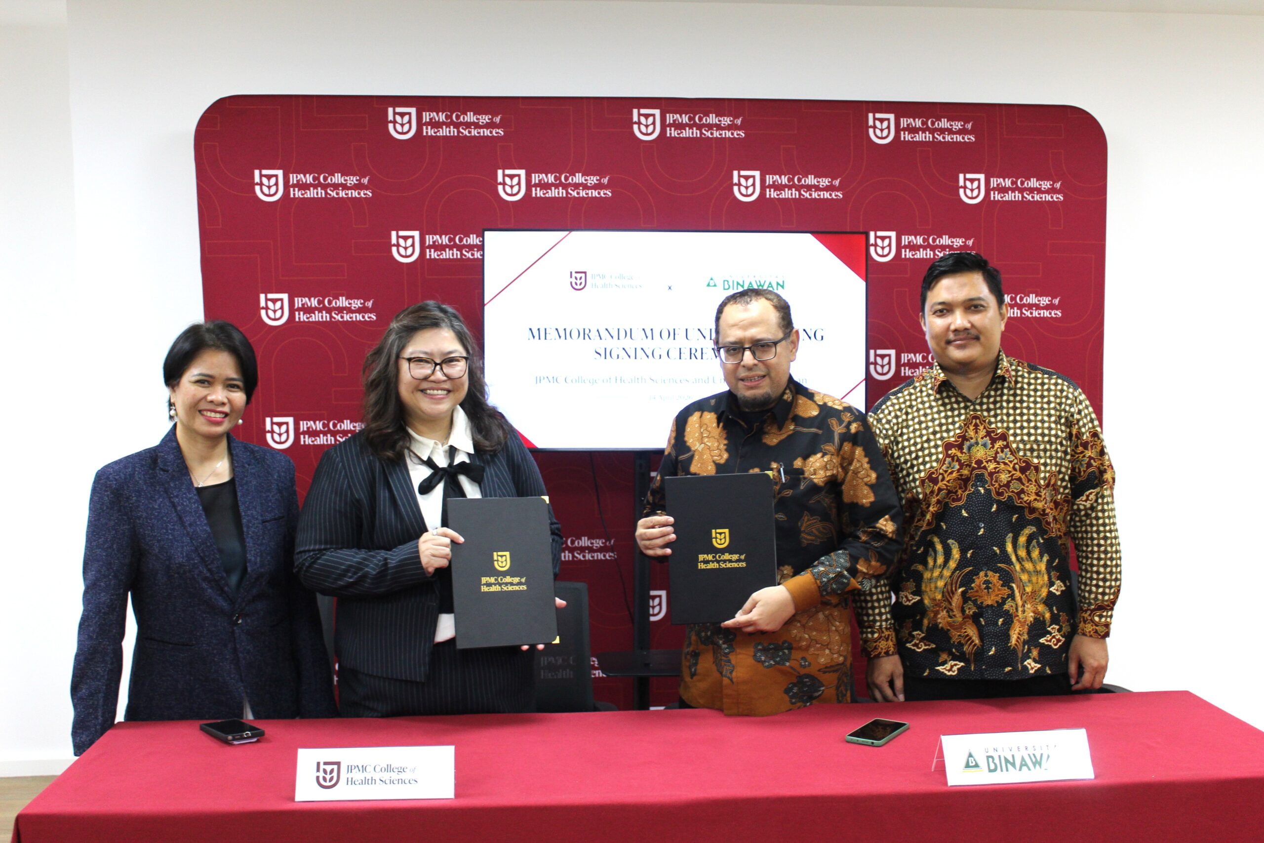 On 14th April 2026, JPMC College of Health Sciences (JCHS) proudly announced the establishment of a strategic partnership with Universitas Binawan following the signing of a Memorandum of Understanding (MOU), marking a significant step toward strengthening international academic collaboration.